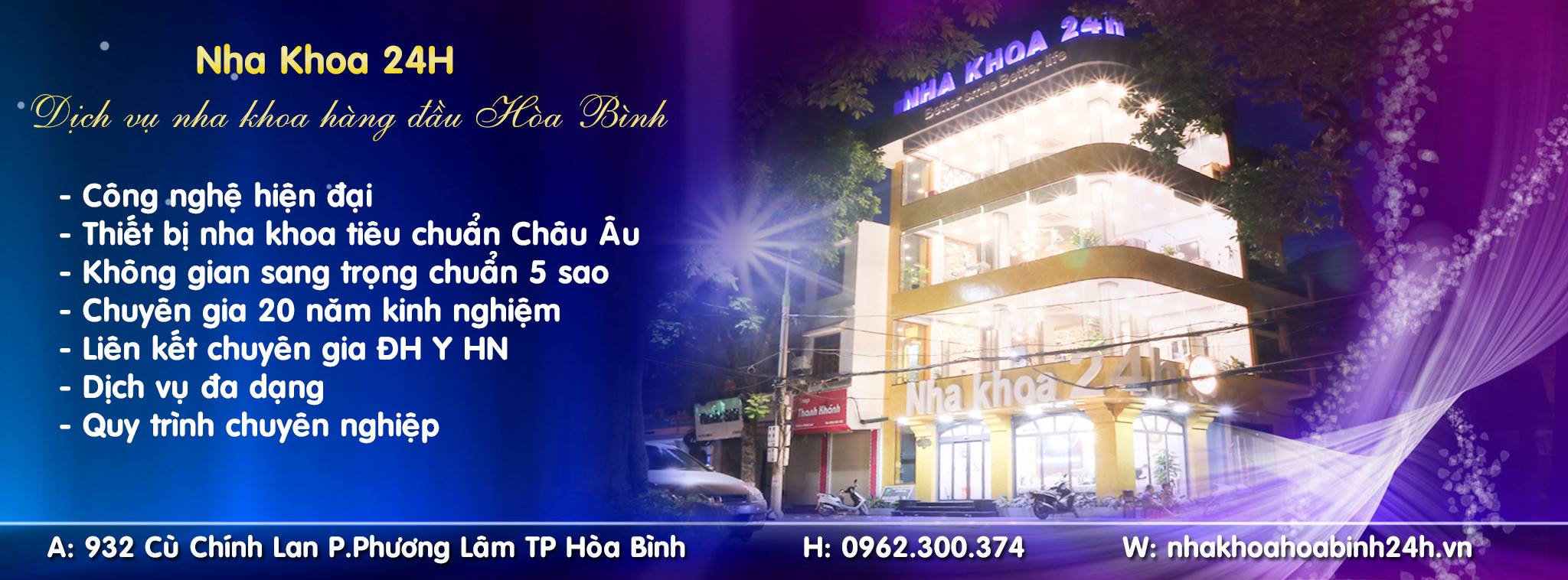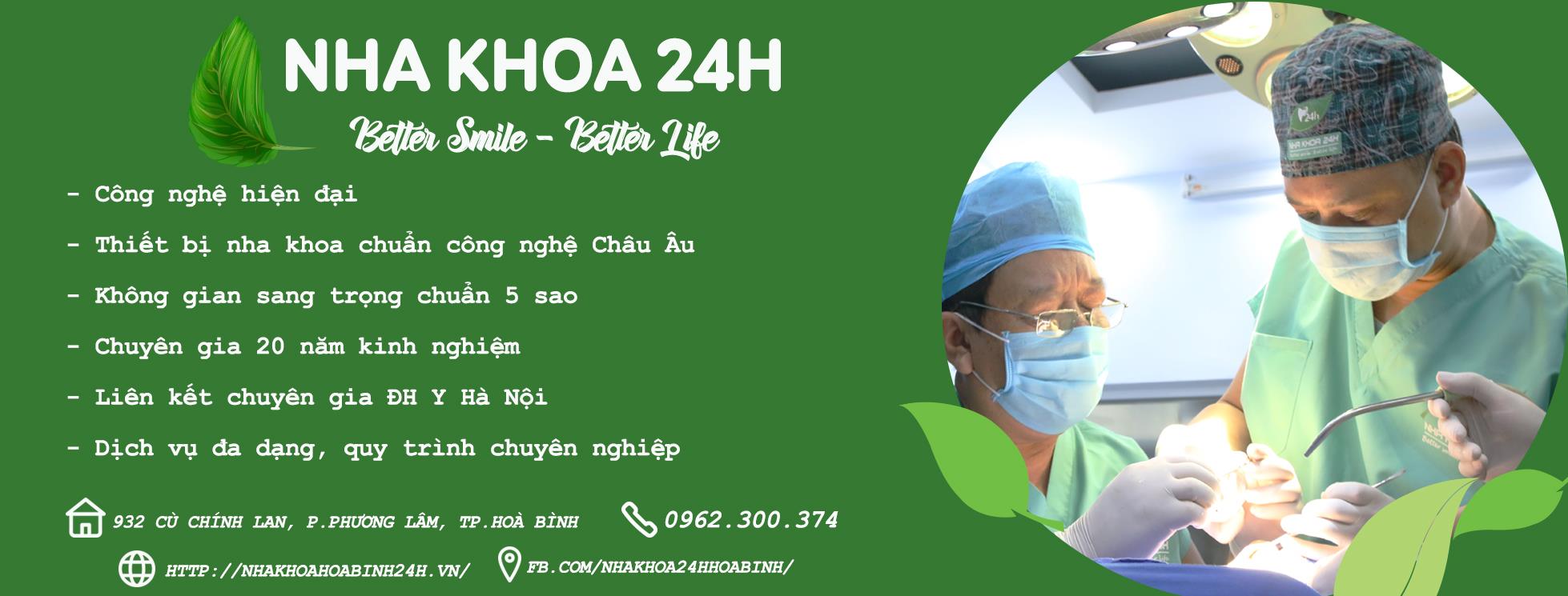 NHA KHOA 24H - Trung tâm Nha khoa thẩm mỹ uy tín với quy mô lớn nhất tại Hòa Bình. Cung cấp đa dạng các dịch vụ nha khoa với chất lượng hoàn hảo, chi phí và thời gian điều trị tiết kiệm nhất.