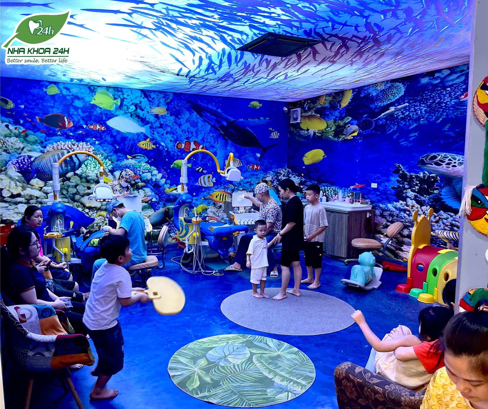Riêng đối với trẻ nhỏ, Nha khoa đã dành riêng cho các bạn một không gian vui chơi nhỏ xinh giúp các bé quên đi lo lắng, sợ hãi khi đến gặp nha sĩ và phụ huynh sẽ rất yên tâm khi đưa trẻ đến với trung tâm nha khoa 24H